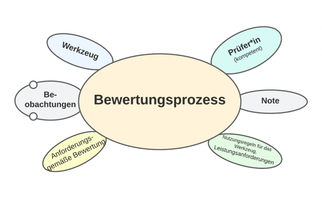 Für eine anforderungsgemäße Beurteilung und Bewertung (Benotung) einer praktischen Prüfung mithilfe eines Werkzeugs werden demnach folgende Komponenten benötigt: