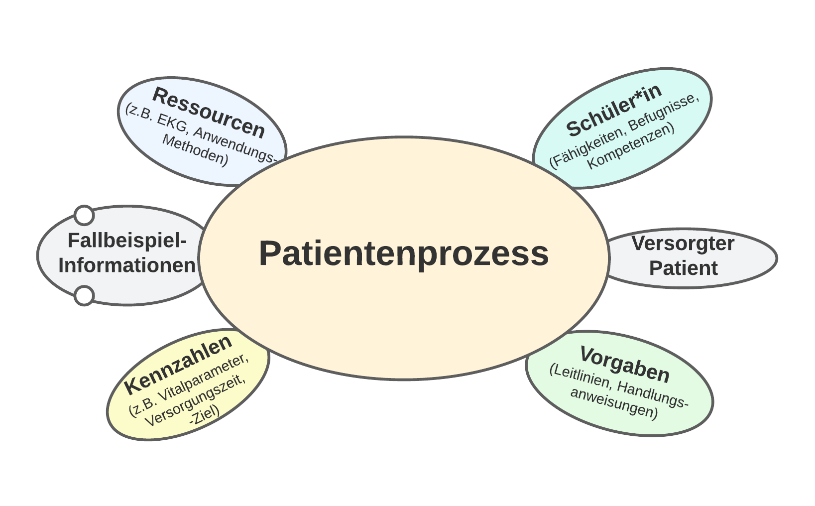 Zusammengefasst bedeutet dies, dass die NotSan als Konsequenz eines Inputs (z. B. Ergebnisse aus dem Patientenprozess „Anamnese“)einen weiteren Patientenprozess oder einen Prozess, der durch diesen bedingt wurde, starten. Innerhalb dessen führen die NotSan zielgerichtete Tätigkeiten durch, um ein gewünschtes Arbeitsergebnis zu erreichen.